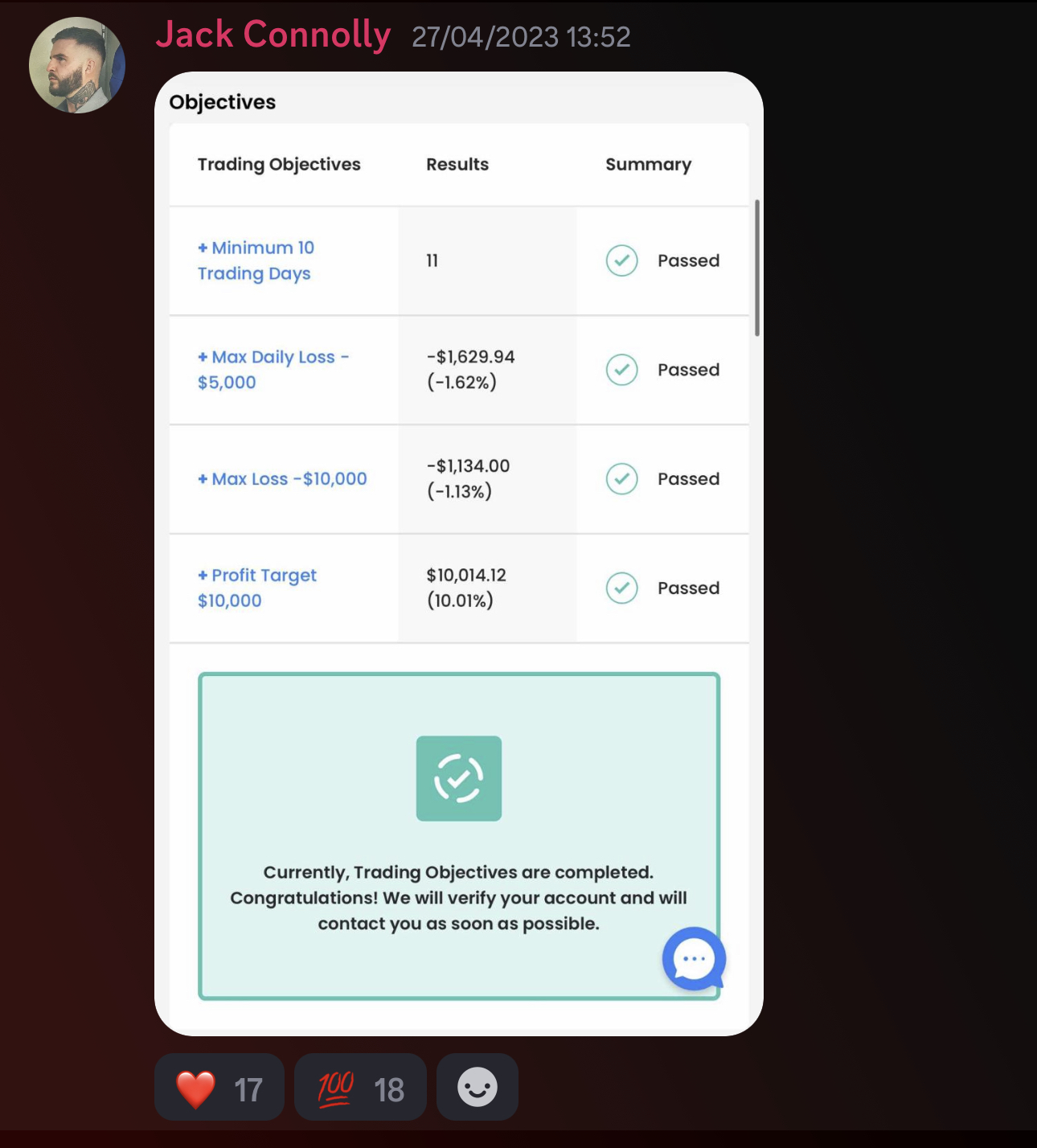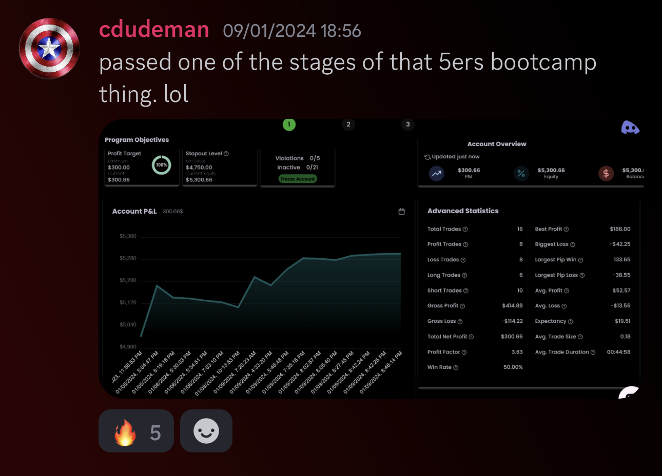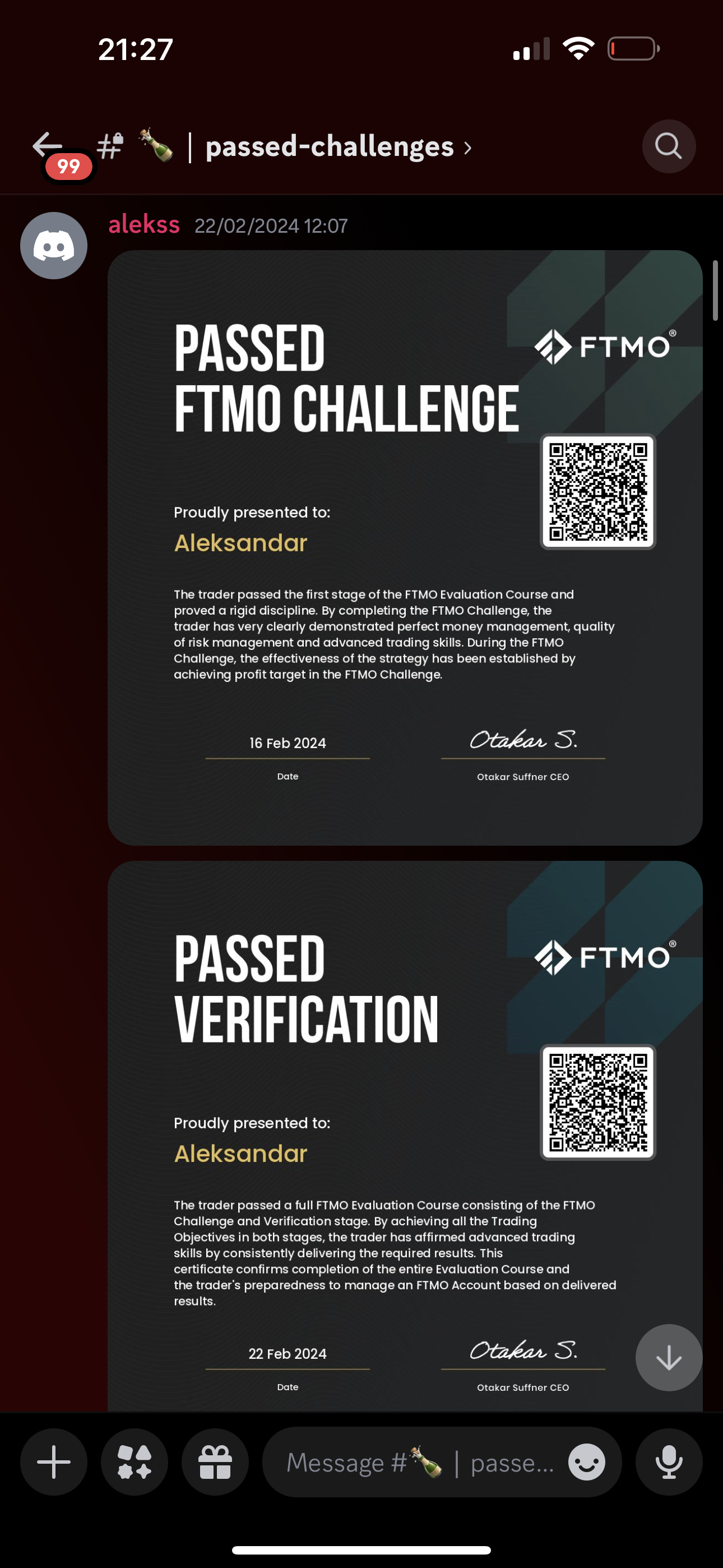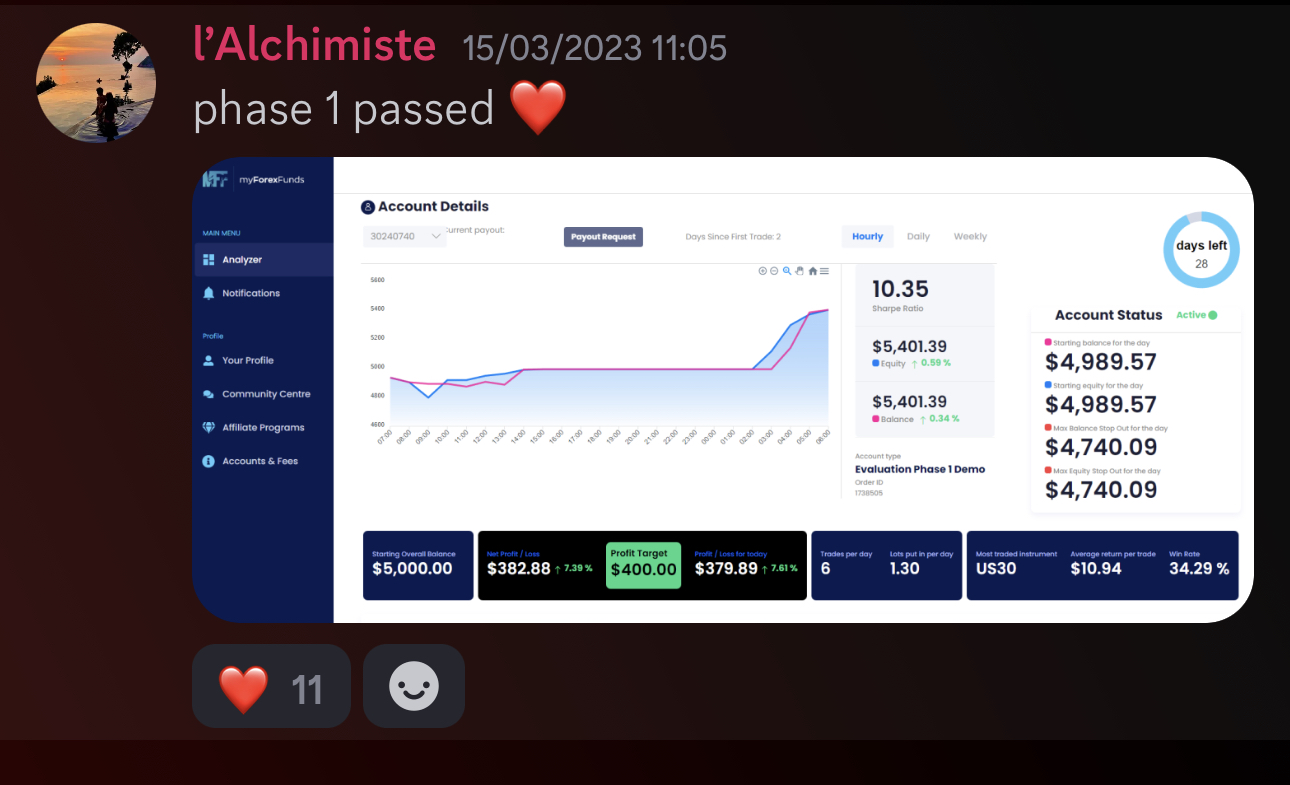Tbh the discord group is worth the 428 USD I spent. He has at least 10 experienced traders on there helping out. The course is new and needs small tweaks like an objective list at the beginning and a checklist at the end of each video. You can definitely pass any challenge with his discord community. He sends his signals along with 100's of other people trading on the same system. I've been in the community since OCT 26th even tho I don't put a lot of time into it because I work a 9-5 IM SLOWLY GRASPING IT. Overall it's a worthy investment because you can make the money you spend back in less than a month while learning his system. 8/10. After I pass my challenge and he adds the last videos I'll be back for another review.