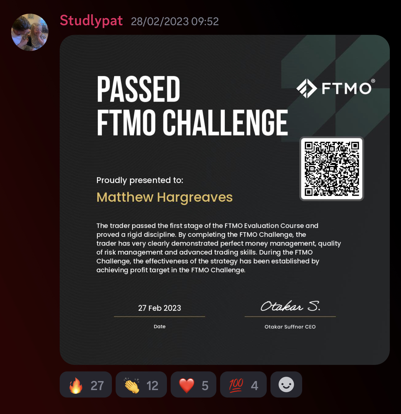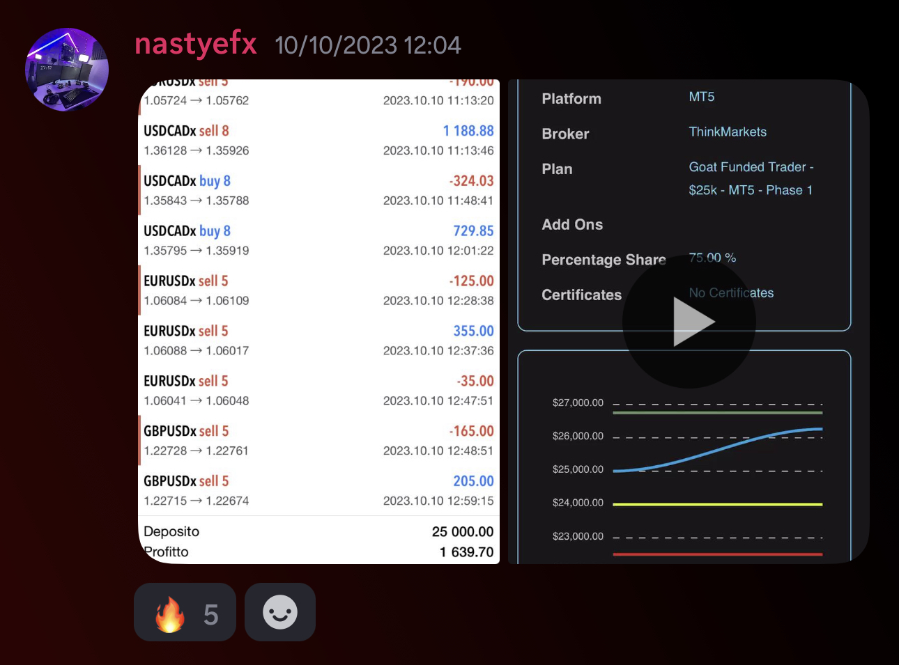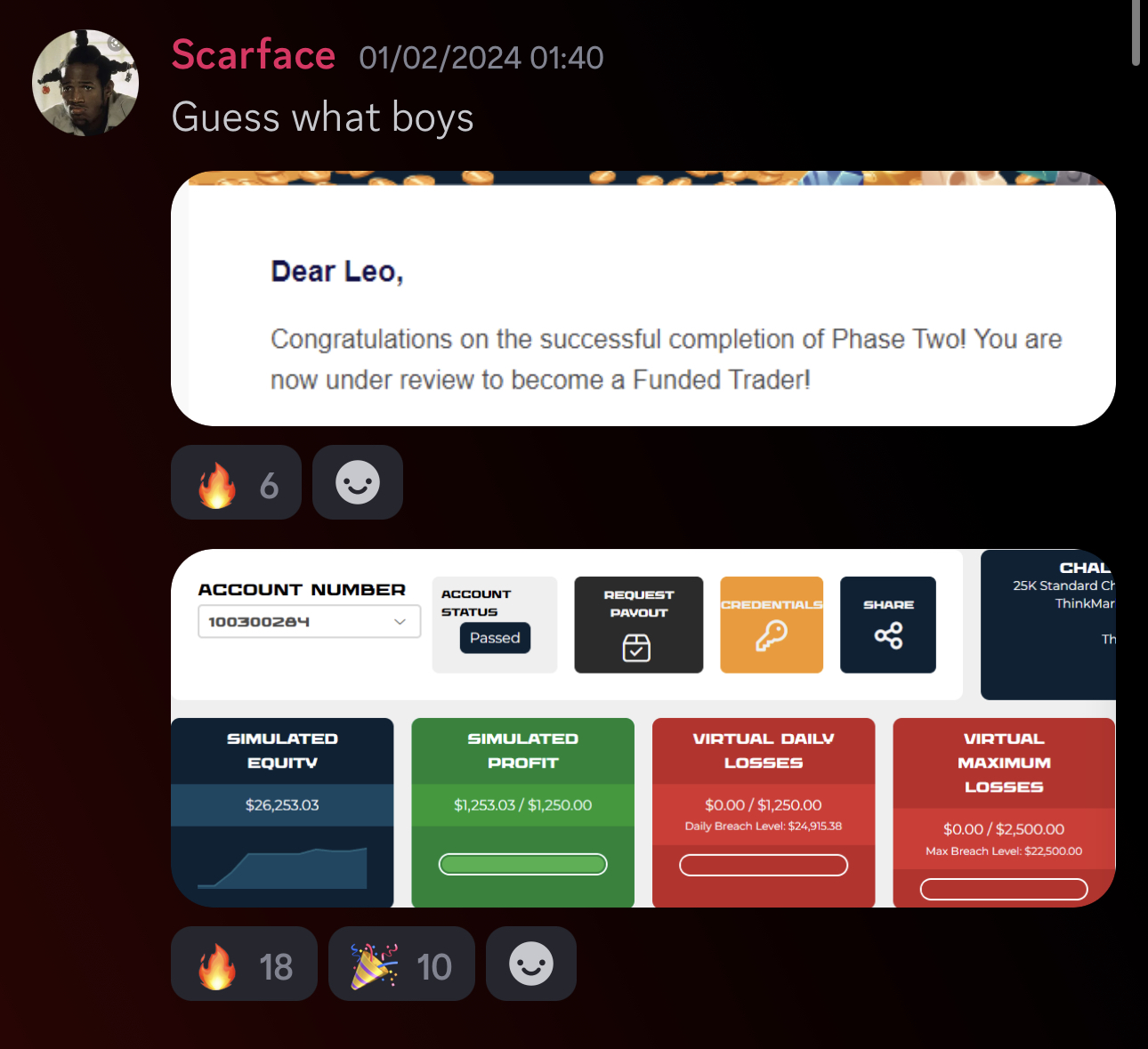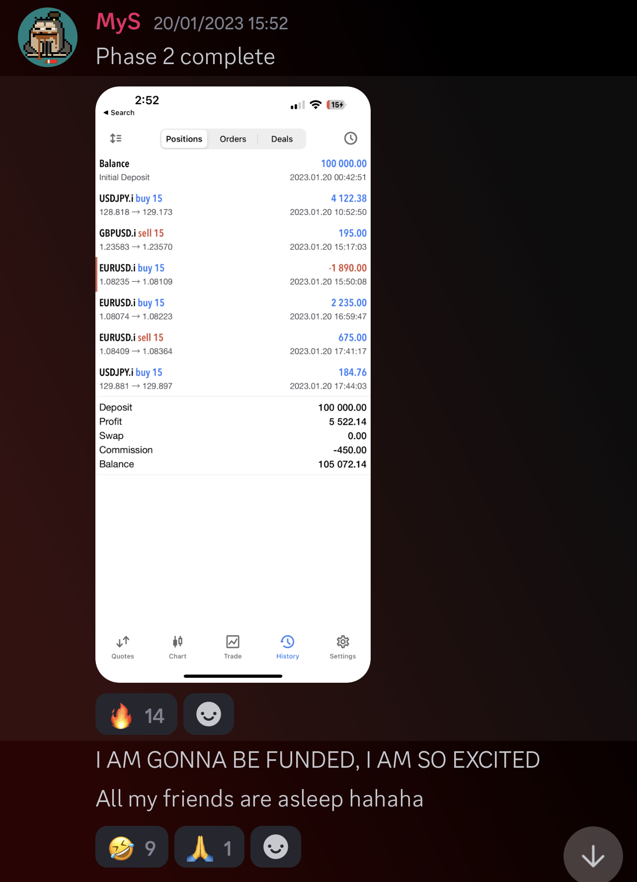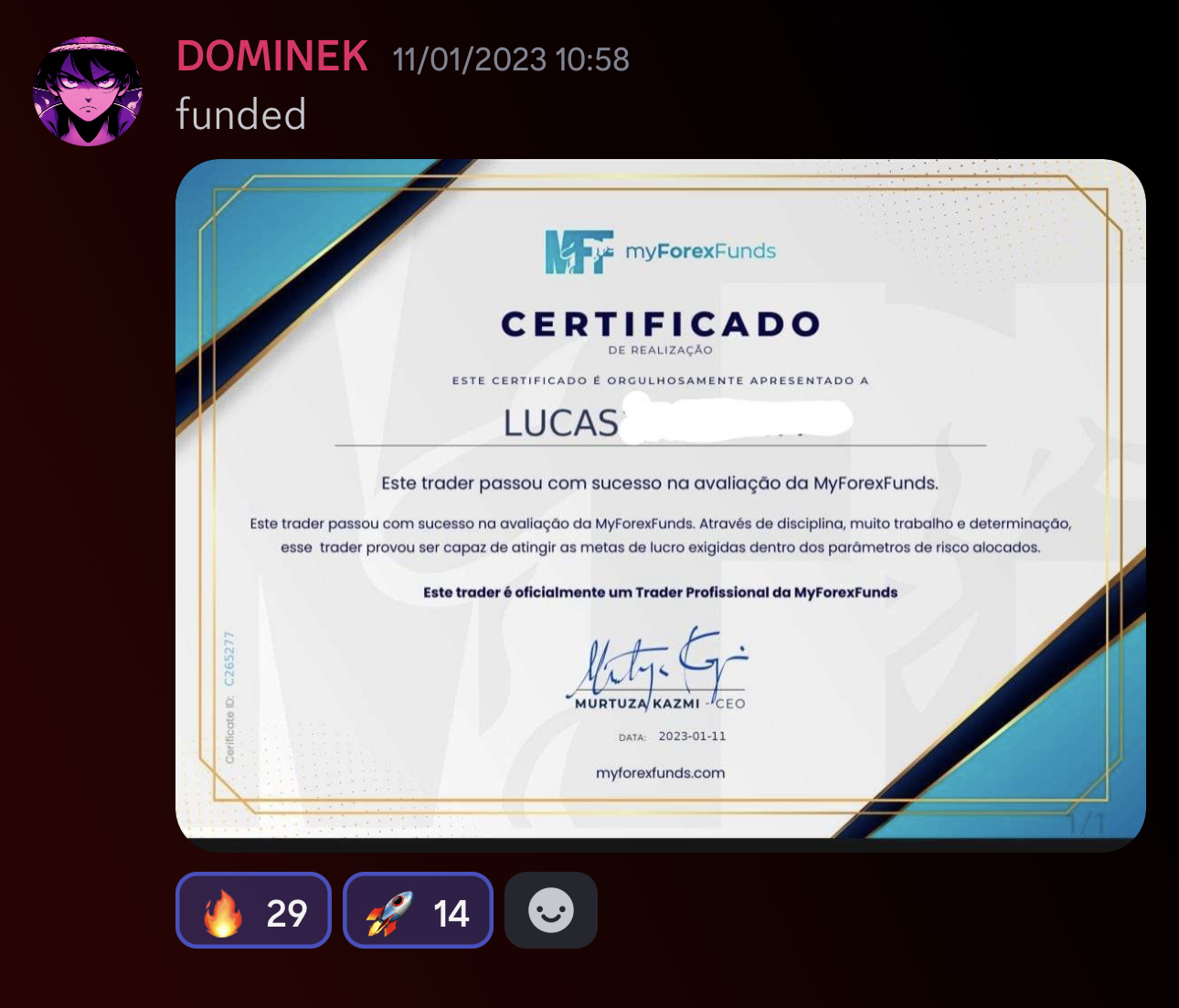 I've been trading for 2 years and have been consistently failing challenges. I found Tomas on youtube a couple months ago and just had my first profit split of 5 figures! Words cannot describe how happy I am.