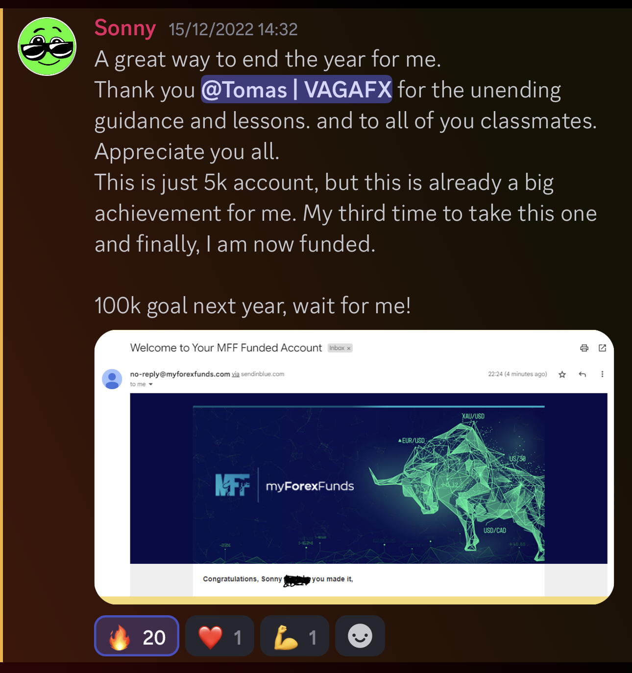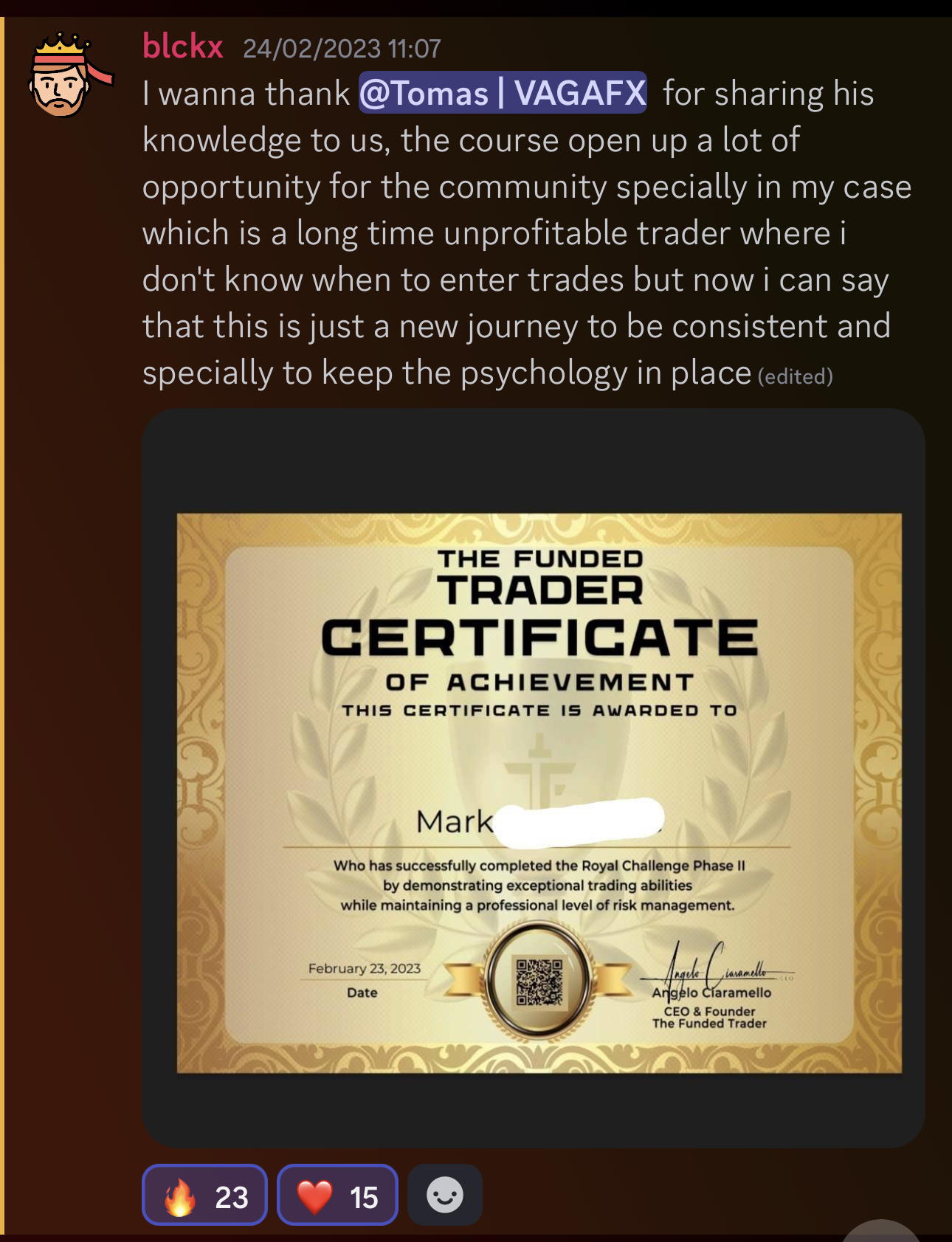 I came across Tomas and his Academy VagaFX a few months ago and even though the free content of his YouTube channel is very helpful, the new online course is at another level. The teachings inside of it + the discord comunity is elevating my trading to another level.